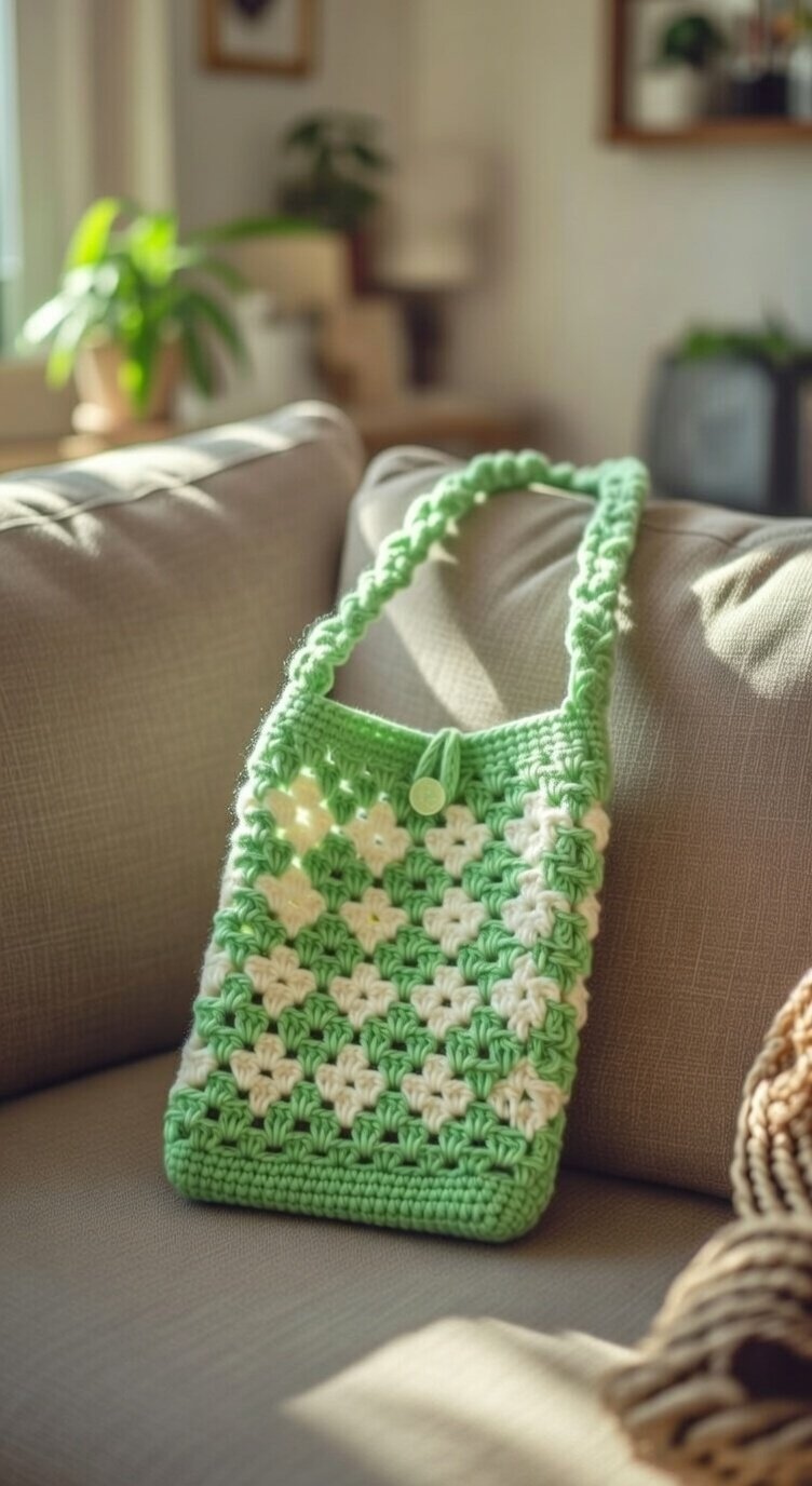 Perfect for those who appreciate handmade crochet bags, phone pouches, and eco-friendly fashion accessories, this crochet mobile bag combines style, comfort, and practicality in one charming piece.