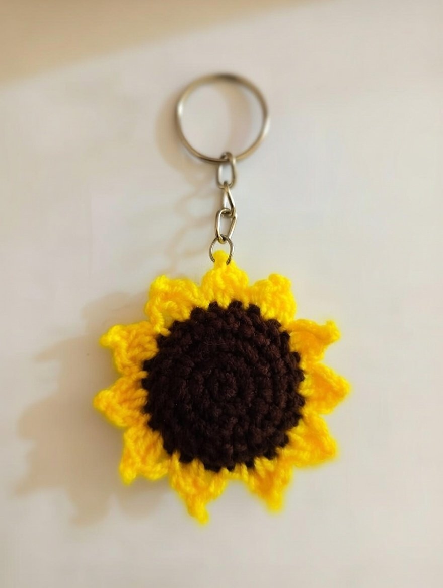 This handmade crochet sunflower keychain is carefully crafted using high-quality, soft yarn to bring a bright and joyful touch to your everyday essentials. Inspired by the beauty of sunflowers, its detailed petals and vibrant look make it a charming accessory for keys, backpacks, purses, or zipper pulls. Lightweight yet durable, it’s perfect for daily use or as a thoughtful handmade gift for birthdays, celebrations, or sunflower lovers. Each piece is unique, reflecting the warmth and love of handmade crochet work.