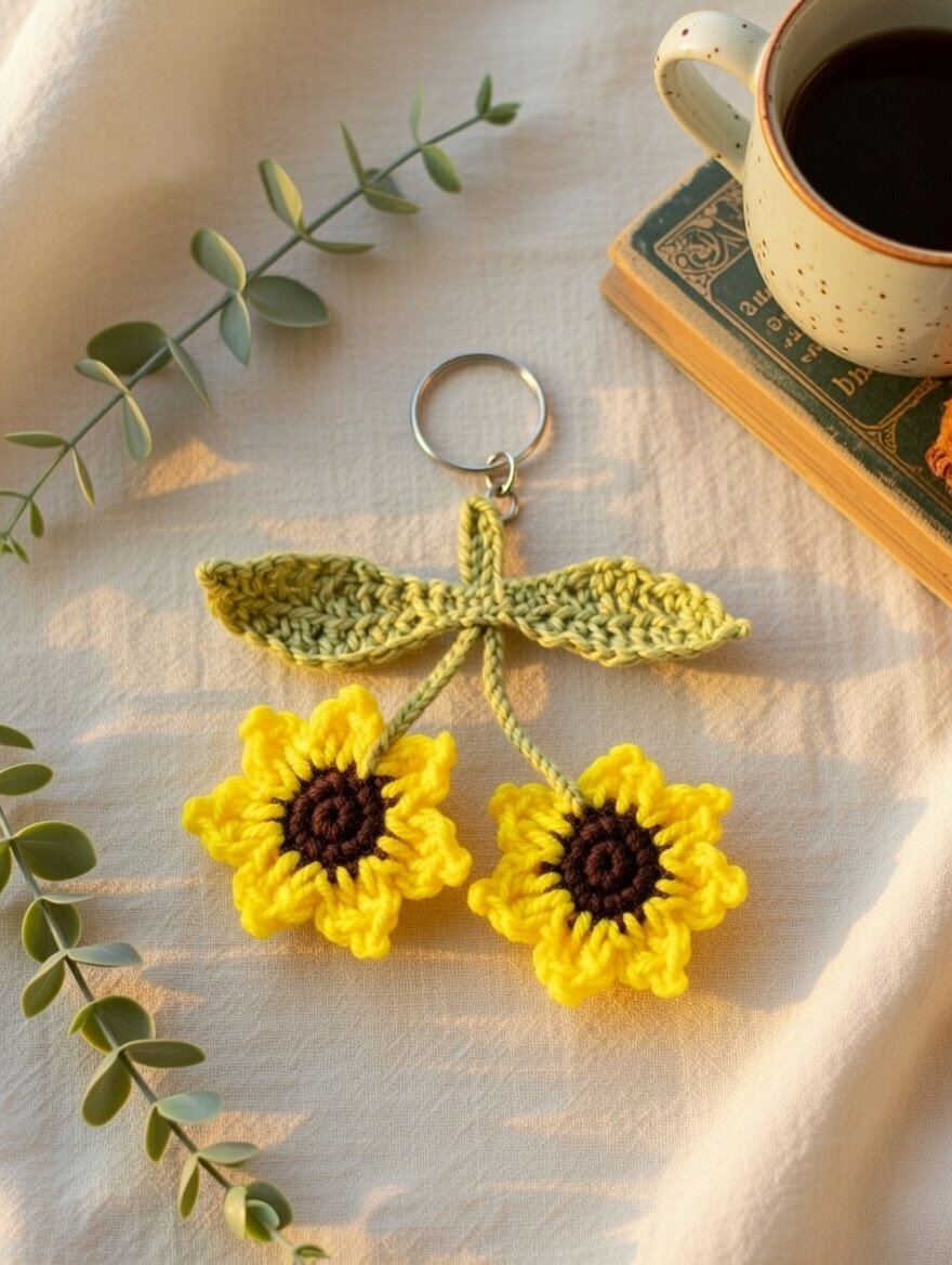 This Twin Sunflower Crochet Keychain is beautifully handmade using high-quality, soft yarn with fine attention to detail. Featuring two blooming sunflower motifs connected with delicate crochet leaves, it brings a warm, joyful touch to your everyday accessories. Lightweight yet durable, it’s perfect for keys, backpacks, purses, or zipper pulls. Ideal as a thoughtful handmade gift for birthdays, special occasions, or sunflower lovers, each piece is unique and made with love.